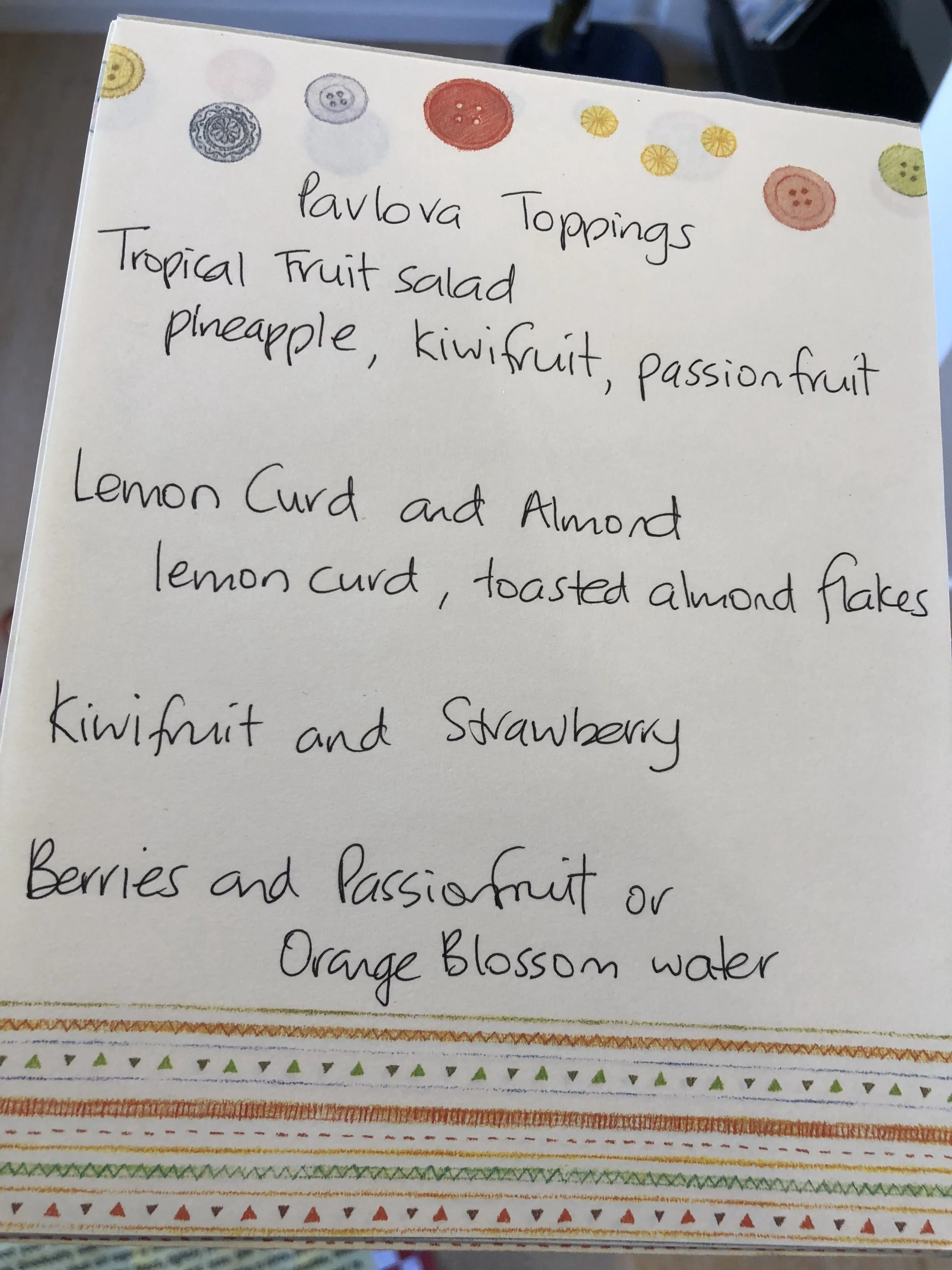 To serve - whip the cream and place spoonfuls on top of the pavs and add the topping of your choice.